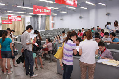 5月11日上午,我院举行2012届毕业生(第二场)大型校园双选会。来自广州、深圳、重庆、成都以及达州等大中城市近100余家单位参加,提供就业岗位达4000余个。大四毕业生纷纷投递简历并积极应聘,大三学生前往“现场观摩”,提早熟悉相关就业环节。