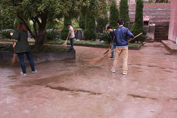 清扫结束后,部分师生登上重霄楼,来到学院杰出校友、巴山儒将魏传统将军的灵堂,举行了默哀和悼念活动并追忆了魏将军光辉的人生。