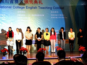 5月7日—9日,由教育部高等学校外语专业教学指导委员会,教育部高等学校大学外语教学指导委员会,四川省教育厅高教处,四川省高校外语教学指导委员会,上海外语教育出版社主办的首届“外教社杯”全国大学英语教学大赛四川赛区比赛在西南交通大学隆重举行。本次比赛分为综合和听说(视听说)两个组,共有来自全省40多所高校的71名教师参赛,其中听说组32名教师,综合组39名教师。经过激烈的角逐,我院外语系刘慧、夏勇强老师凭着自己雄厚的实力分别取得了听说组三等奖、综合组优胜奖的佳绩,为学院赢得了荣誉。