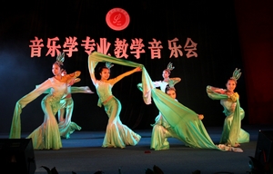 音乐会在器乐合奏《欢乐颂》中拉开帷幕。欢快的群舞《麻辣俏幺妹》、优美的女生小合唱《打双麻窝子送红军》独具川东特色,赢得在场观众的掌声。专家组成员、省教育厅高教处处长周雪峰受到感染,上台深情朗诵由他创作的诗歌《其实》,并盛情邀请我院音乐系姜星名老师一同演唱了歌曲《为了谁》,将此次晚会推向高潮。二胡齐奏《奔驰在千里草原》让我们感受到了奔驰在草原的无限魅力,展现了音乐学08级同学的高超演奏水平。男声四重唱《弯弯的月亮》、《游击队歌》,女声独唱《断桥遗梦》、《蓝色爱情海》,群舞《古色青云》等节目异彩纷呈。一曲曲动听的歌声饱含深情,一段段动人的舞蹈优美婀娜,使得全场掌声雷鸣。晚会最后在曾获得过首届全国大学生艺术节一等奖的群舞《大巴山抬工汉》的震撼中完美落下帷幕。