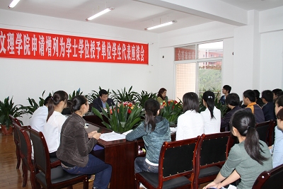 省专家组成员四川师范大学党委副书记钟仕伦教授,四川师范大学教科院副院长戴艳教授,四川省学位办王计生同志在莲湖校区五楼会议室与学生代表就学习、生活等方面进行了交谈。专家们亲切、真诚的询问,同学们切实、流畅的回答,使会议气氛十分活跃,会场不时爆发出一阵阵热烈的掌声。