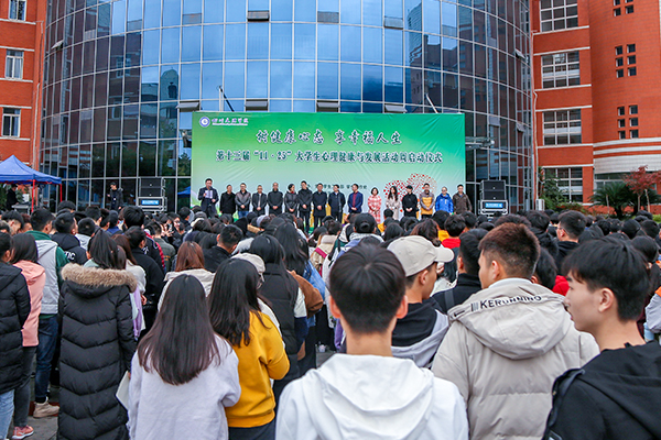 11月25日,第十三届“11·25”大学生心理健康与发展活动周启动仪式在莲湖校区举行,本届活动周以“树健康心态,享幸福人生”为主题,旨在引导大学生树立健康积极的心态,倡导大学生关注心理健康,增强心理素质,培养健全人格。
