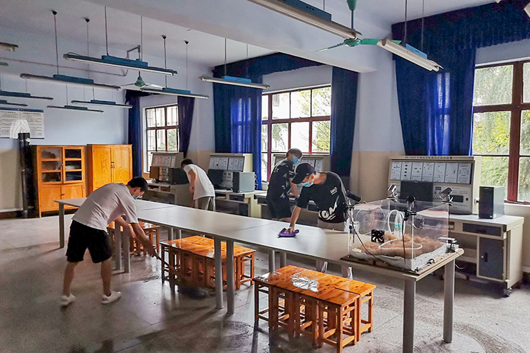 志愿者们打扫实验室