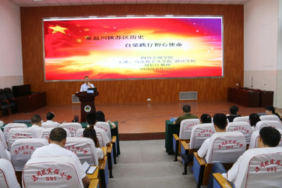 刘长江作“重温川陕苏区历史、自觉践行初心使命”专题讲座。他从“固军坝起义”“万源保卫战”讲述到“奉命西进”“西路军战斗”,回顾了川陕苏区的历史,川陕根据地的铁血英雄用坚定执着的信仰、勇于牺牲的英雄气概、用无敌的青春和宝贵的生命为代价,书写了巴山儿女壮烈英勇的诗篇。他说,作为一名党员,要时刻牢记并弘扬“智勇坚定、排难创新、团结奋斗、不胜不休”的巴山红军精神,自觉践行初心使命。