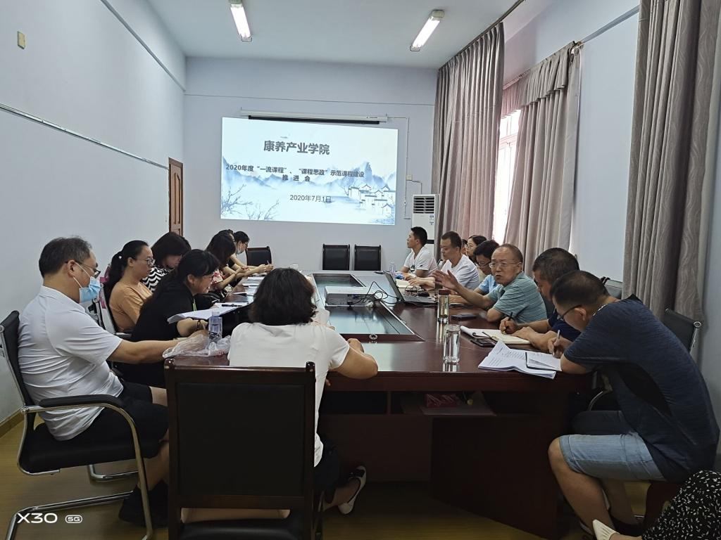 为深入贯彻落实学校一流专业和一流课程建设会议精神,7月1日,康养产业学院召开一流课程、“课程思政”示范课程建设推进会。教学督导专家王道坤教授应邀出席,康养产业学院院长陈熙隆主持会议。