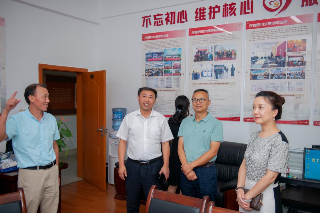 7月7日,达州市政协副主席、农工党达州市委主委蒲春天带队到beat365走访调研,听取意见建议。学校党委常委、统战部部长涂德祥陪同,达州市人大常委会副秘书长、农工党达州市委副主委王英参加调研。