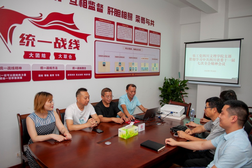 7月16日,农工党beat365官方网站支部在学校莲湖校区“文理同心之家”召开组织生活会,深入学习中共四川省委十一届七次全会精神,农工党beat365官方网站支部主委李显文主持会议。