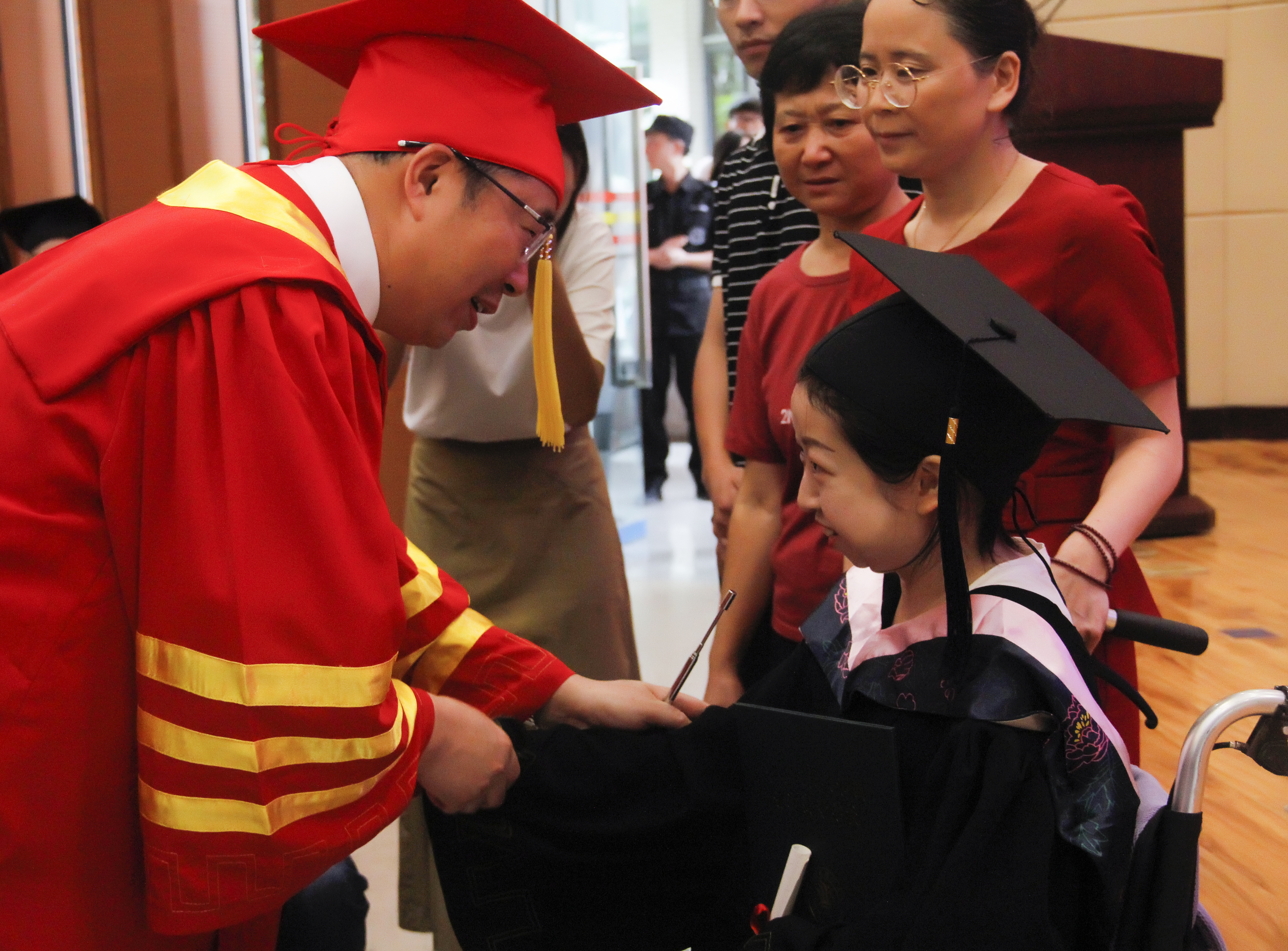 这一次,校长躬身为轮椅上的最美姑娘授位