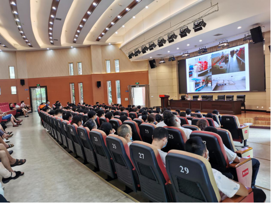 后勤服务处餐饮中心全体员工、博大资产公司市场部员工和新入围食堂物资配送企业代表等200余人参加培训会。