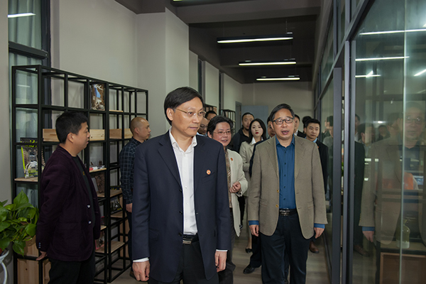 揭牌仪式结束后,学校领导一行参观了公共艺术分公司及入驻企业的实训现场,并提出指导意见。