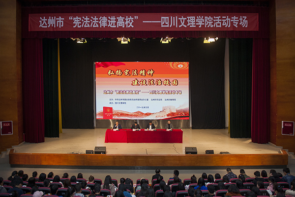 3月27日,以“弘扬宪法精神 建设法治校园”为主题的达州市“宪法法律进高校”活动启动仪式在莲湖校区举行。党委副书记、工会主席侯忠明教授出席活动并致辞,达州市司法局党委书记、局长魏雪峰宣讲宪法,达州市司法局党委委员、副局长杨忠主持活动,达州市教育局副局长王军出席启动仪式。