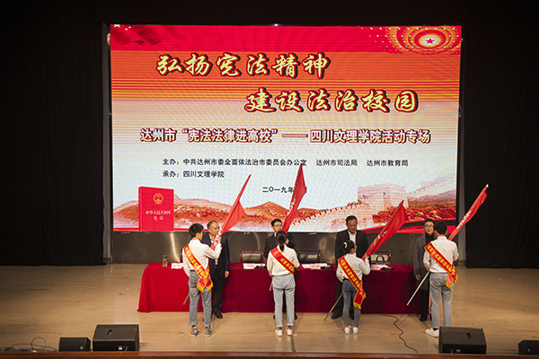 活动中还进行了授旗仪式,与会领导为大学生普法志愿者服务队授旗。此外,达州市“宪法法律进高校”系列活动还包括宪法法律宣传咨询、大学生法律志愿服务等。