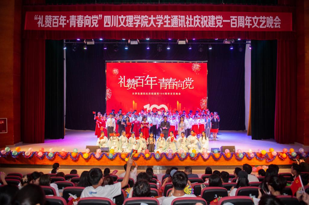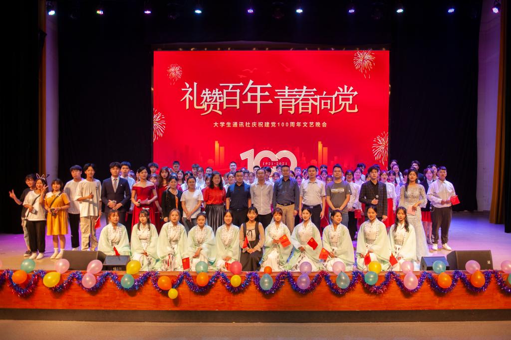 5月28日晚,大学生通讯社在莲湖校区多功能厅举行“礼赞百年•青春向党”庆祝建党100周年文艺晚会。学校相关职能部门、部分二级学院师生及往届大学生通讯社社长等300余人观看本次晚会。