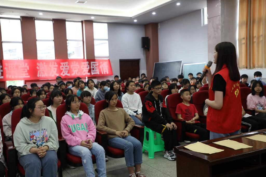 此次活动把党史学习教育搬进课堂,使党史学习教育进学校、进课堂、进学生头脑中,激励同学们爱党爱国,明确时代担当,坚定听党话、跟党走的信念。