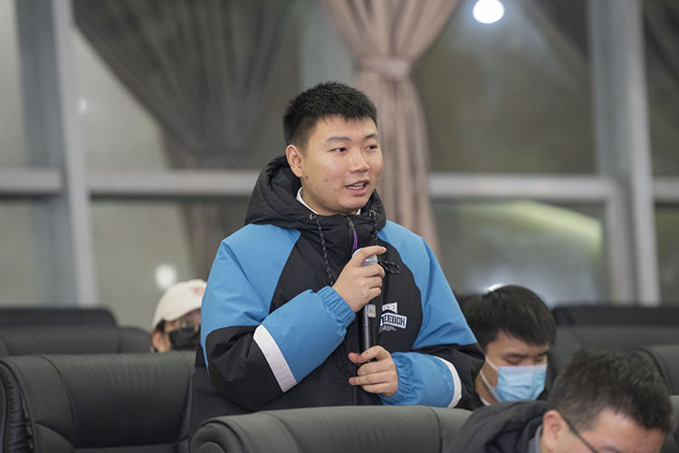 李壮成介绍座谈会相关准备情况;徐晓宗强调了道路安全、食品安全的重要性;邓杰说,学校会加强软硬件建设为同学们提供良好的环境;程碧英希望学生在加强学习学科知识的同时注重实践能力的培养。各职能部门负责人对学生代表提出的问题逐一进行回复和说明。