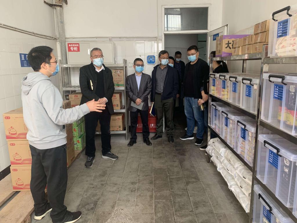 徐晓宗来到学生食堂,对米、面、粮油、蔬菜、肉类等生活物资供应储备情况和储存库房进行了深入细致的了解和查看,要求按照省教厅文件规定抓落实,并反复叮嘱餐饮从业人员在岗期间务必戴好口罩,做好消杀工作,确保食堂环境卫生安全。