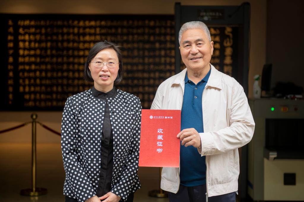 邓杰向巴山书画院颁发了收藏证书,并感谢巴山书画院为学校慷慨捐赠图书,图书馆将依托优质的硬件设施和管理水平,更好地保护和利用好这些珍贵的书籍,让更多的读者了解达州书画文化传承脉络以及书画艺术最新创作成果,共享和利用这些宝贵的图书资源,以达到文明传承、文化创新的作用。