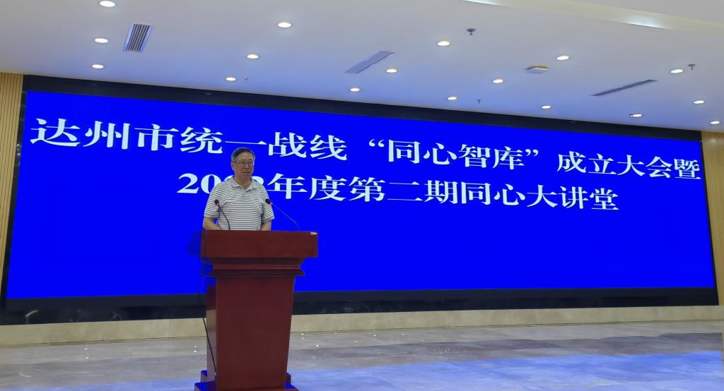 5月26日,由中共达州市委统一战线工作部主办的达州市统一战线“同心智库”成立大会暨2022年度第二期同心大讲堂在达州市委党校举行。省委统战部二级巡视员李明全、市委常委、统战部部长、总工会主席王蔚荩出席会议。beat3658名教师入选达州市统一战线“同心智库”专家,加晓昕、靳能泉、唐华生等三位教授在同心大讲堂作专题报告。