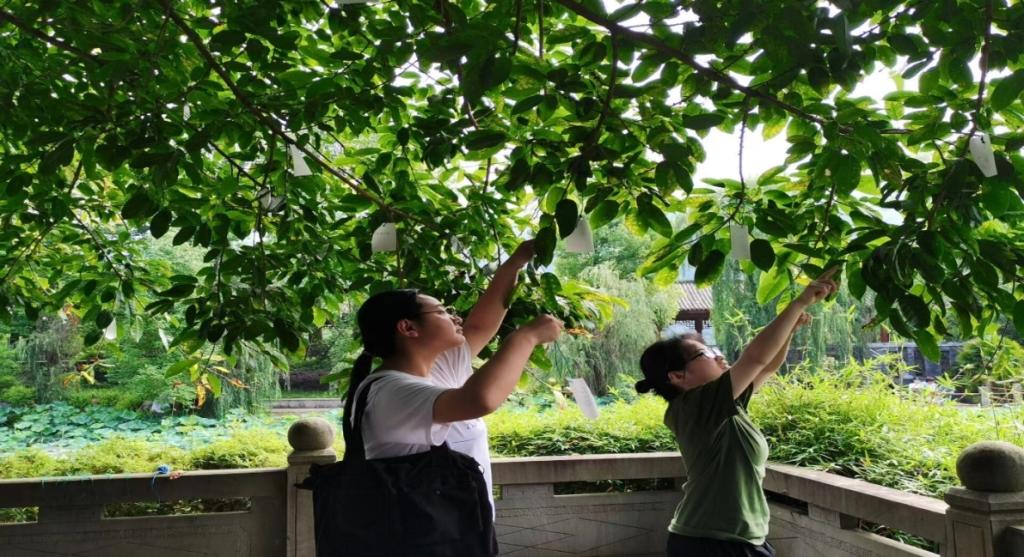 本次活动以游戏互动为主。在翠柳湖畔,闻讯而来的同学们有序地参加投壶、猜字谜、动手做五色绳以及挂祈福书签等活动,其中拥有悠久历史的“投壶”小游戏吸引了很多目光,大家排成长队,跃跃欲试。按照规则,体验者需站在距离箭筒两米之外进行投掷,投中指定数目后即可领取奖品。字谜竞猜处也非常热闹,同学们三五成群,相互研究谜题,猜中者的欢呼声不绝于耳。还有同学把写有自己愿望和祝福的卡片挂在榕树枝上;有的围坐在桌前,挑好自己喜欢的绳子,专心编织手绳。活动现场,到处都是欢声笑语,这份喜悦,融进了传统的端午佳节,充盈着六月的文理校园。