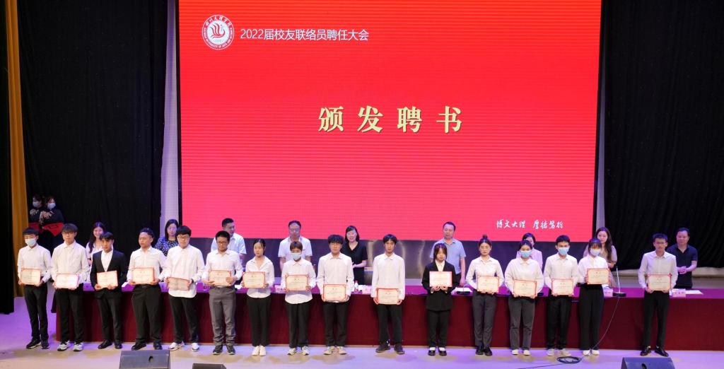 会上,校友工作办公室主任杨成林宣读了《beat365官方网站关于聘任2022届校友联络员的通知》,117名毕业生经过推荐遴选,获聘为2022届校友联络员。接着与会领导为各二级学院校友联络员颁发了聘书。