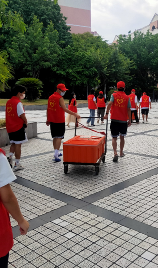 后勤服务处在做好各项保障工作的同时,科室负责人和办公室工作人员积极响应学校党委号召,主动加入志愿者行列,为在校隔离学生提供送餐服务。