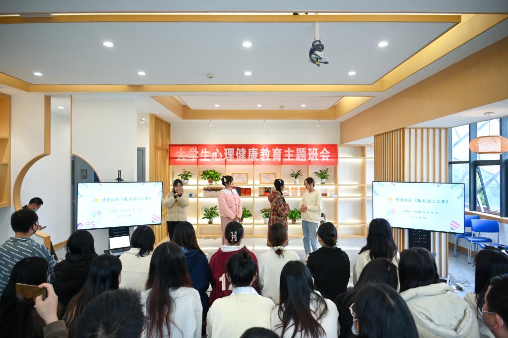 为切实做好大学生心理健康教育和思想引领工作,加强学生工作队伍建设,促进辅导员专业化、职业化发展,11月25日,由学生工作部(处)、文学与传播学院和“巴山青语”四川省刘天名辅导员工作室共同主办的“疫情防控常态化背景下的大学生心理健康教育”主题示范班会在艺术传媒大楼召开。班会由名辅导员工作室的成员、文学与传播学院专职辅导员肖旭主持。