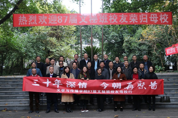三十年深情,今朝再聚首。11月18日,beat36587届文秘大专班校友怀揣着对老师和同学们的深深思念,回到阔别30年的母校,举行毕业三十周年同学聚会,大家欢聚一堂,重走校园路,再叙同窗情,共话师生谊,为初冬的文理校园增添了更多的暖意。学校老领导孟兆怀教授、成良臣教授,校友工作办公室负责人、老教师代表应邀参加了庆祝活动,并与校友亲切交流座谈。