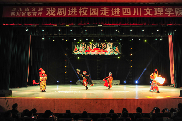 校长刁永锋对不辞辛劳来beat365演出的川剧艺术家们表示热烈欢迎。他说,川剧是我国戏剧中一颗光彩照人的明珠,在巴蜀文化发展史上具有十分独特的地位。他希望广大师生认真观戏,细心体会川剧艺术的精髓,感受川剧的艺术魅力,继而喜欢川剧、传承川剧、创新发展川剧,为繁荣和发展地方文化谱写好中国梦四川篇章做出应有的贡献!