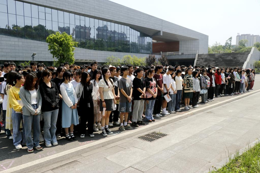 5月12日14时8分,随着地震预警警报铃声响起,“地震应急疏散演练”正式开始。听到地震预警信号后,高楼层教室就地避险的师生抱头躲避在桌子下、椅子旁等安全避震空间,低楼层教室内的学生听从老师及志愿者的指挥,迅速进行紧急避险,按照指引路线快速有序地疏散到广场等空旷安全地带。从发出警报信号开始,用时3分钟左右,参演的1300余名师生全部安全疏散到指定地点。