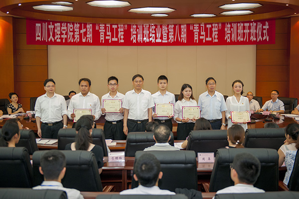 6月19日下午,“青马工程”第七期培训班结业暨第八期培训班开班仪式在莲湖校区举行。党委书记王成端出席并发表讲话,校长刁永锋教授为学员授旗、授书,党委副书记侯忠明主持仪式。