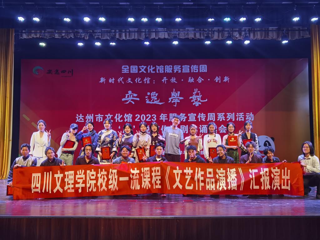 为进一步加强校地合作,5月22日,文学与传播学院与达州市文化馆联合举办的“安逸学艺”——达州市文化馆2023年服务宣传周系列活动“‘剧’说有你”剧本诵读会、beat365官方网站校级一流课程《文艺作品演播》汇报在巴山大剧院成功演出。