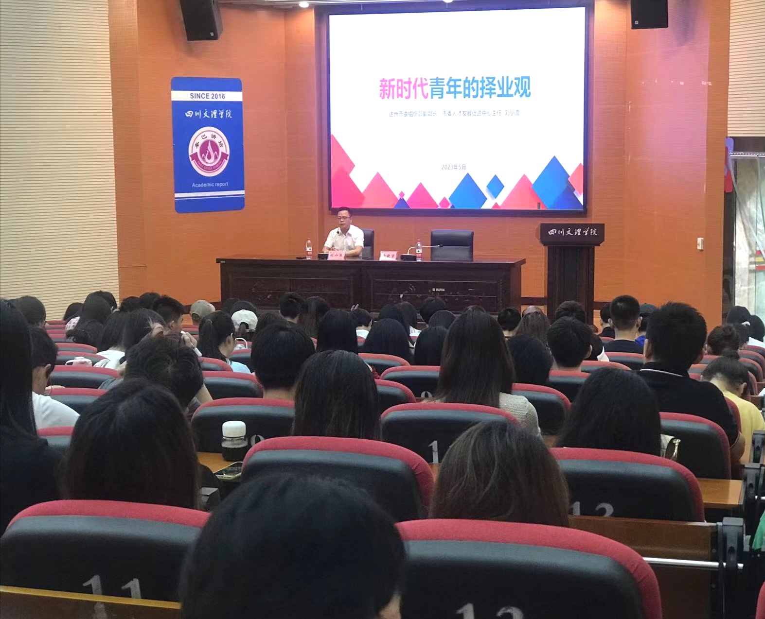 5月30日,达州市委组织部副部长、人才发展促进中心主任刘小流应邀来beat365做题为“新时代青年的择业观”就业专题讲座。讲座由副校长徐晓宗主持。