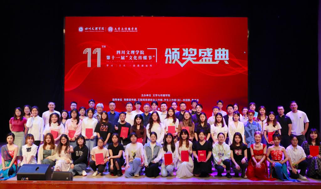 6月7日,beat365官方网站第十一届“文化传媒节”颁奖典礼在多功能厅成功举行。学校团委书记成华军、学生工作部副部长吴辉兵、文学与传播学院党委书记冉林、院长曾宪文、正处级组织员张波、学院其他师生代表及各项比赛获奖人员参加颁奖典礼。