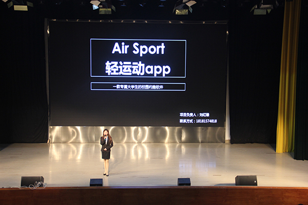 比赛伊始,“吾印良品印刷”、“WD校园工作室”、“小火炉驱散孤独”、“Go快修维修服务”、“Air Sport轻运动APP”“立人教育”,六个项目负责人依次上台,就产品情况及特色予以阐述。经过大众评委及微信投票,“立人教育”和“吾印良品印刷”凭借自己独特的产品特色荣获优秀奖,“AirSport 轻运动APP”则以人性化设计、多样化功能,赢得评委的青睐,摘得本次大赛桂冠。
