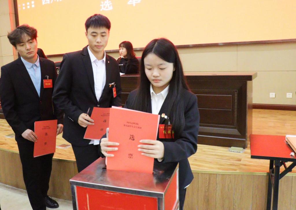 按照大会议程和选举办法,经过民主投票,与会代表选举产生了王春梅、石文怡、叶淋、付玺瑞、冯旭、朱佳怡、刘艳、刘云慧、李自强、李园圆、李桐桐、李慧鑫、杨茶琳、汪伶香、张倬妍、陈毅科、胡景润、钟方萍、晏秀君、蒋林、曾凤琳等21名同学为第九届学生委员会委员,石文怡、朱佳怡、李自强、李桐桐、汪伶香等5名同学为第九届学生会主席团成员。