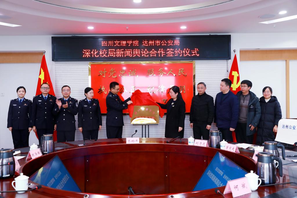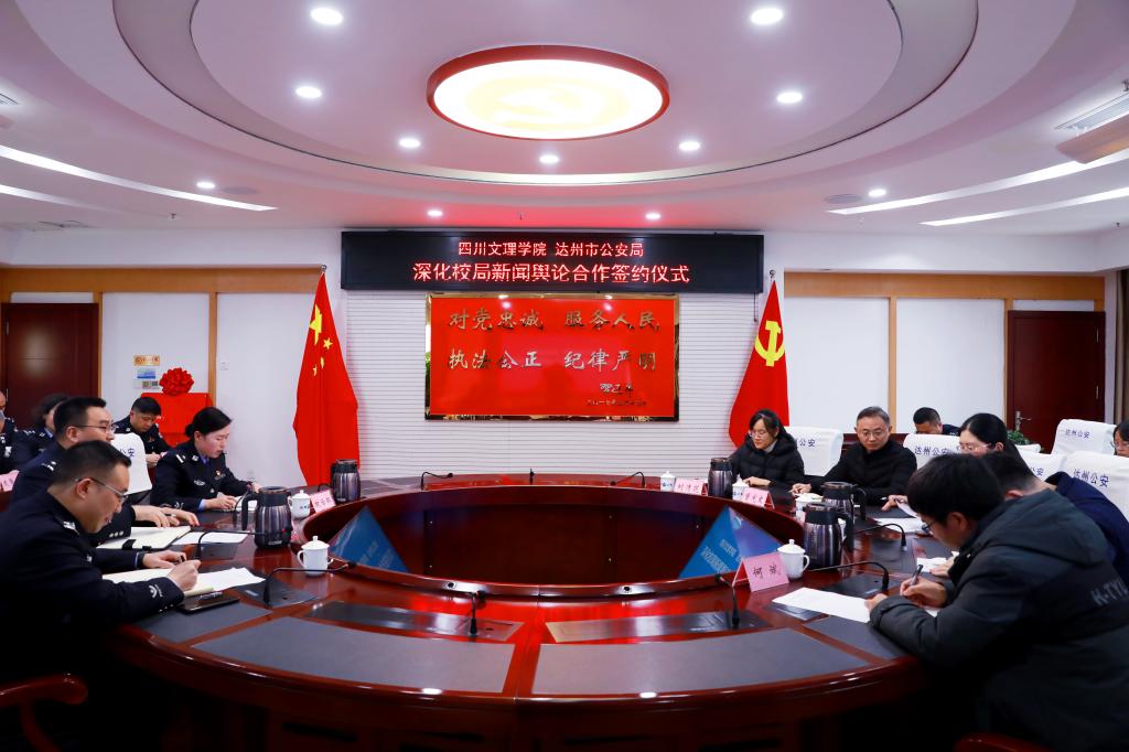 为进一步落实《beat365官方网站-达州市公安局战略合作框架协议》的相关精神,促进产学研协同创新,12月14日下午,学院与达州市公安局在公安局党委会议室举行深化校局新闻舆论合作签约仪式。副校长程碧英、达州市公安局党委委员、政治部主任贾人全等出席签约仪式。