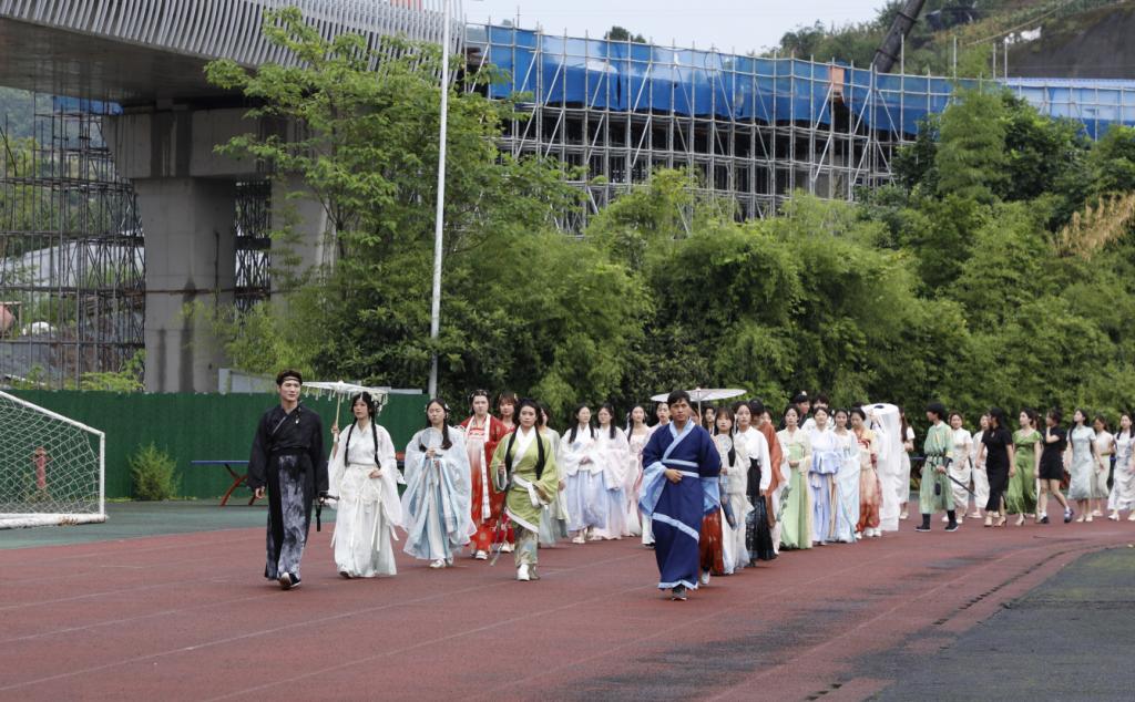 下午,开放麦、传统服饰展示、书法创意作品创作、传统小游戏、漆扇制作等传统文化沉浸式体验,让同学们深刻感受了音乐与中华优秀传统文化的韵味与魅力;晚上,歌曲串烧、现代舞、古典舞、说唱、走秀轮番上阵,充分展示了当代大学生的绚丽青春。音乐会现场,夜空与操场融为一体,台上与台下相与呼应,呈现了一幅视听会通、古今交融、传统与现代碰撞的绝美画卷。