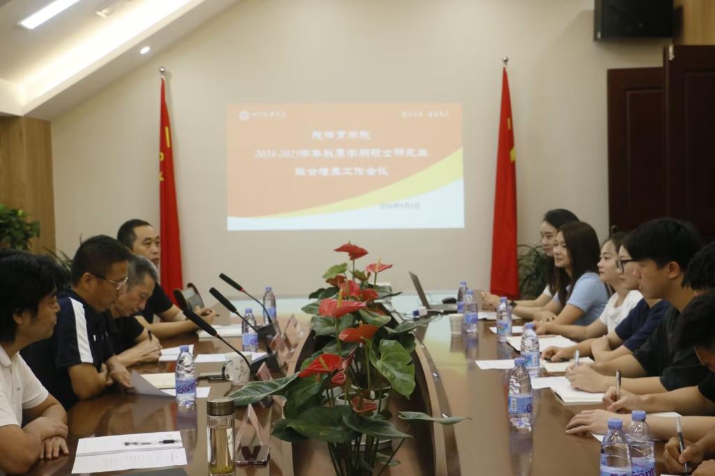 2024年9月14日上午,体育学院在117会议室召开2024-2025学年秋季学期研究生联合培养工作会议。体育学院班子成员、硕士生导师以及2022级、2023级的6位研究生参会。会议由副院长孙亮亮主持。