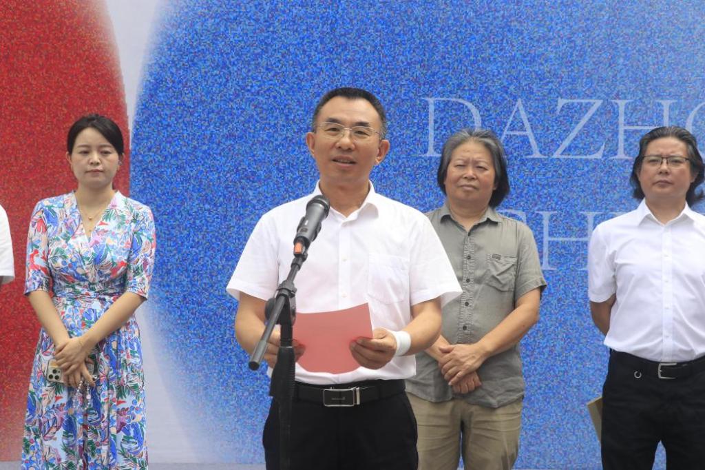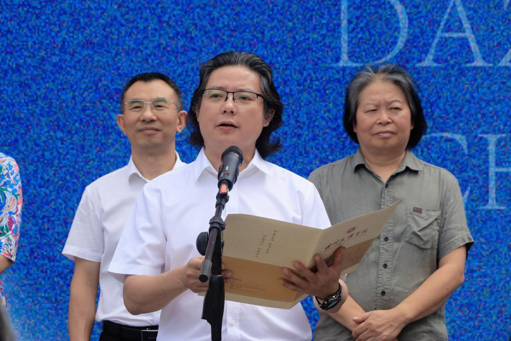 开幕式上,美术学院院长刘承川教授率先致辞,深度诠释“校城共生” 理念,为这场艺术实践揭开序幕。教师代表唐泽雨老师分享了在教学实践中引导学生扎根地域文化进行创作的经验。唐老师表示,达州厚重的红色文化和独特的巴文化,为学生创作提供了丰富灵感,此次毕业展是学生创造力的集中呈现,也是地域文化与艺术创新融合的成果展示。毕业生代表郭芳兵讲述了其创作背后的故事与文化思考。