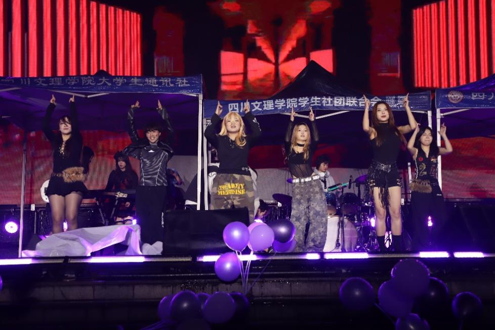《野火乐队》随后登场,《大风吹》掀翻夜晚的沉闷,《逆战》则在绝境中吹响激情的号角,让摇滚的火焰在雨夜里越烧越旺。从遗憾释然到与孤独共舞,从勇敢不屈到深情告白,《埋淌乐队》用摇滚解构着情绪的种种模样,在冬夜里留下治愈的回响。说唱《LOVE2》杨宇琦、李茂同学用赤诚的歌词诉说“跌跌撞撞却勇敢去爱”的信念,让鼓点与雨花落地声奇妙共鸣。