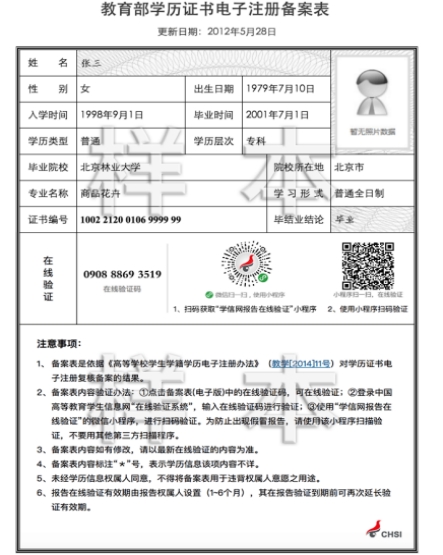 ②非应届本科毕业生为“中国高等教育学生信息网”的《教育部学历证书电子注册备案表》。