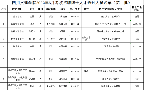 按照《beat365官方网站2022年博士人才招聘公告》,经过初试(初审)、复试考核程序,现将beat365官方网站2022年6月考核招聘博士人才通过人员名单(第二批)予以公布,请报考者注意查阅。