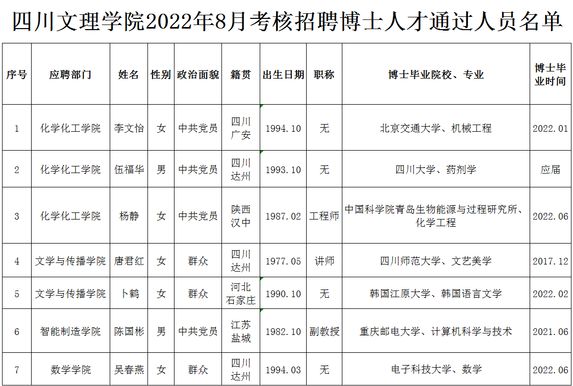 按照《beat365官方网站2022年博士人才招聘公告》,经过初试(初审)、复试考核程序,现将beat365官方网站2022年8月考核招聘博士人才通过人员名单予以公布,请报考者注意查阅。