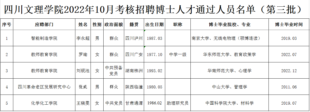 按照《beat365官方网站2022年博士人才招聘公告》,经过初试(初审)、复试考核程序,现将beat365官方网站2022年10月考核招聘博士人才(第三批)通过人员名单予以公布,请报考者注意查阅。