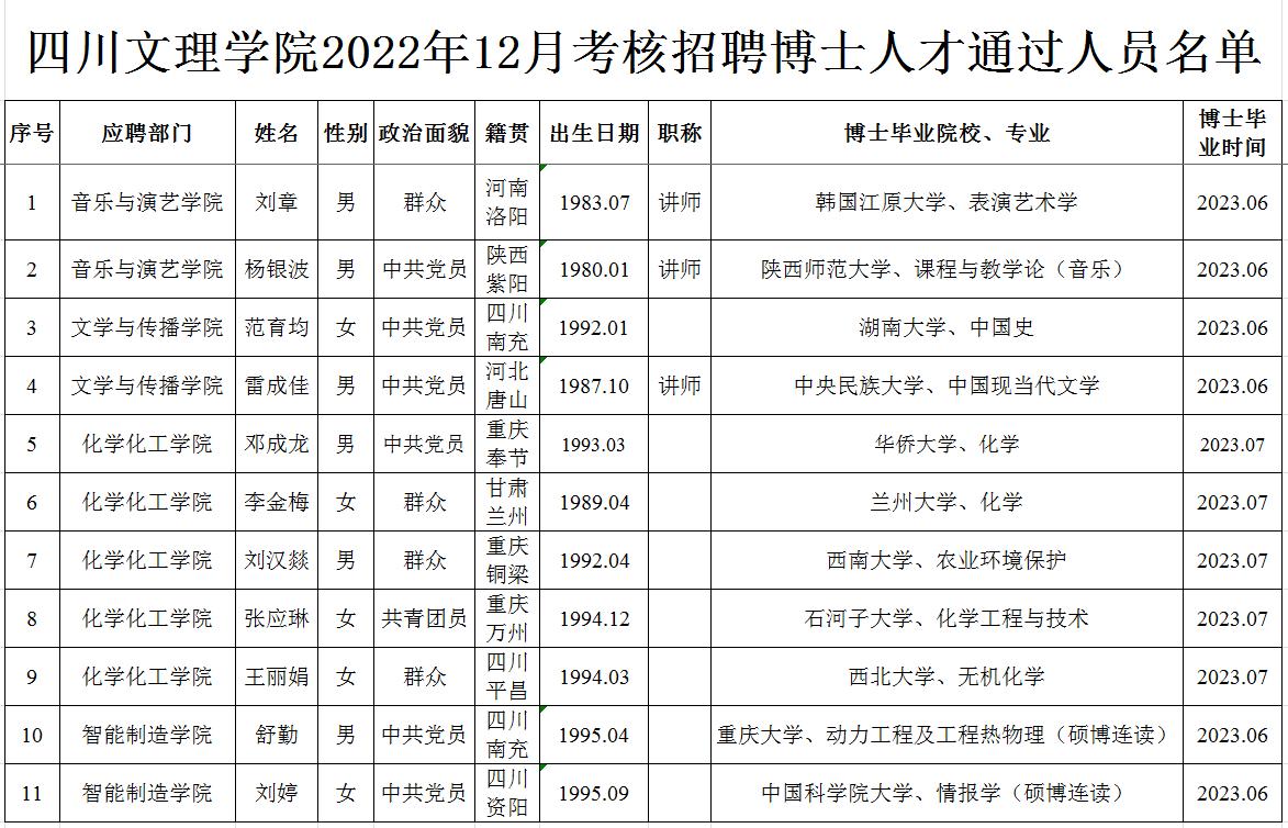 按照《beat365官方网站2023年博士人才招聘公告》,经过初试(初审)、复试考核程序,现将beat365官方网站2022年12月考核招聘博士人才通过人员名单予以公布,请报考者注意查阅。