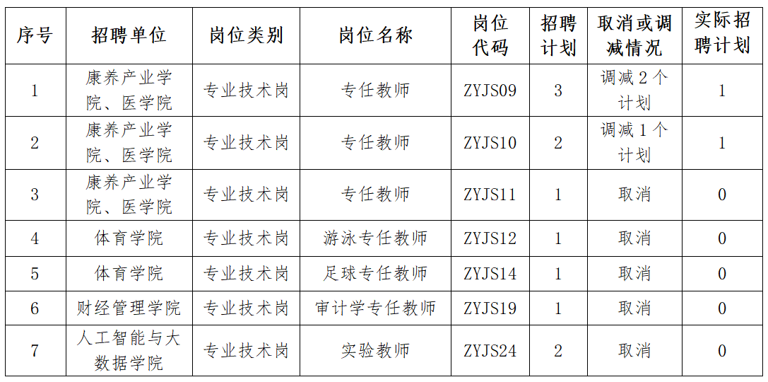 根据《beat365官方网站2025年6月人才招聘公告》规定,因部分招聘岗位的有效报考人数与招聘名额之比未达到规定的开考比例,现取消和调减部分招聘岗位的招聘计划,调减2个岗位3个计划、取消5个岗位6个计划。具体情况如下。