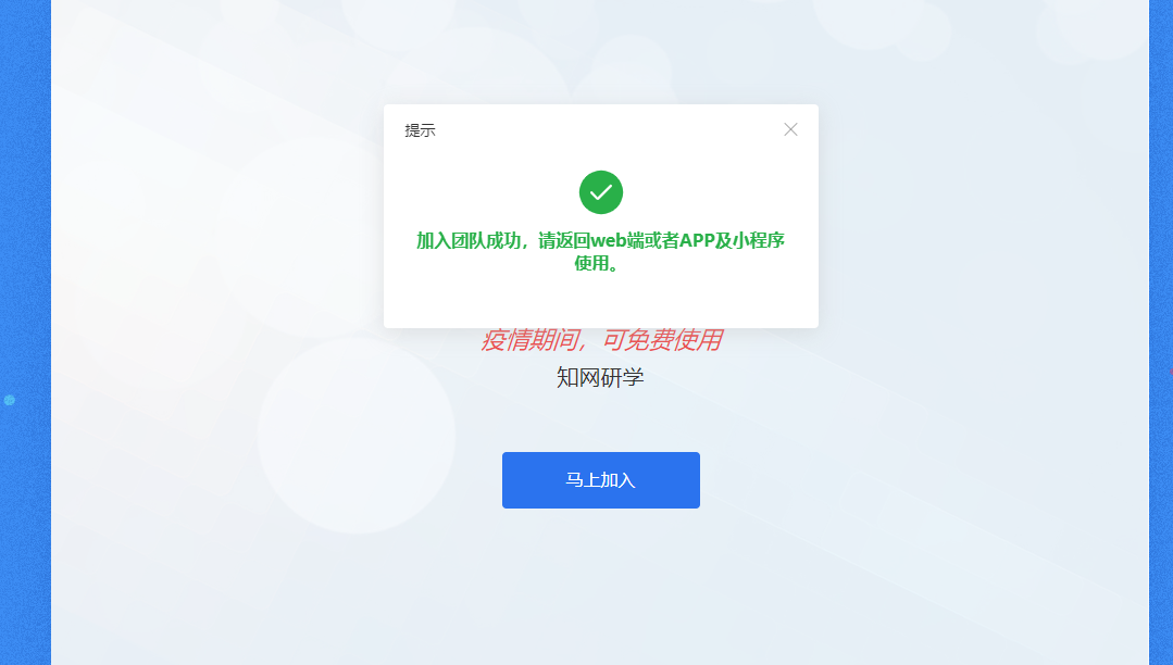 第一步:各二级学院读者打开不同的网址链接(详见附件),然后点击“马上加入”。