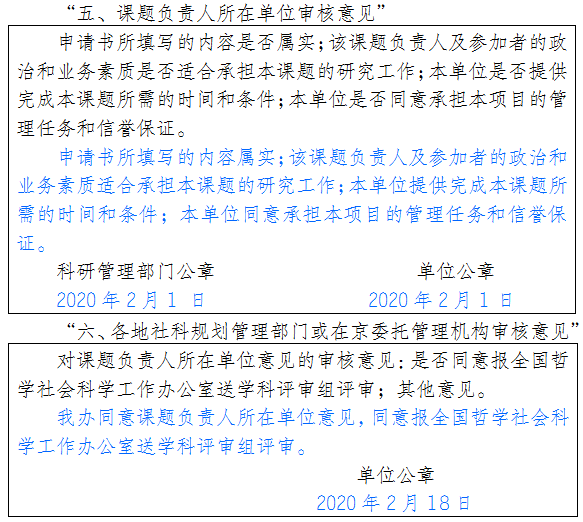 5. 请各单位认真组织学习《2020年度国家社会科学基金项目申报公告》(http://www.npopss-cn.gov.cn/n1/2019/1220/c219469-31516101.html),特别注意以下几点:
