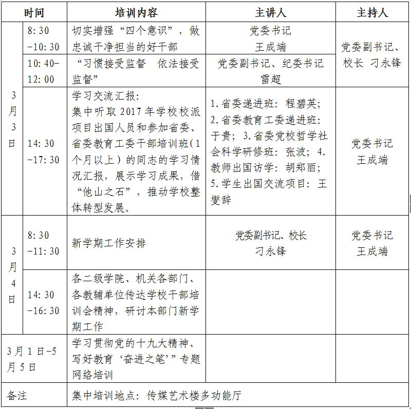 为全面落实中央、省委有关干部教育培训精神,进一步提高beat365干部队伍综合素质,根据学校党委年度工作安排,结合学校工作实际和干部队伍的建设要求,特制定如下教育培训实施方案:
