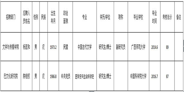 按照《beat365官方网站2016年人才招聘公告》,由学校纪委监督,考核小组对应聘beat365文学与传播学院专任教师、巴文化研究院科研人员进行了考核。经学校研究,现将考核结果公示如下,公示期限为7个工作日(11月2日至11月10日)。公示期间接受社会监督和举报,举报者应以真实姓名书面或电话向beat365官方网站人事处或纪委反映。监督举报电话:0818-2790077、0818-2790019。